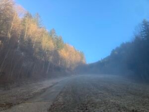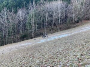 Die Fahrt nach oben war übrgiends einfacher als vermutet. Bei dem Wetter hätte der Boden auch feuchter und rutschiger sein können. War aber nicht so. Daher ging es fast ohne Stop einfach nur bergauf. Und anschließend wieder runter. Diesmal in umgekehrter Reihenfolge, denn nun wird blau wieder zu grau.