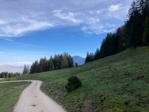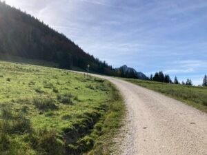 Während es in Aschau richtig grau war, schien oberhalb von 900m die Sonne. Inversionswetterlage! Perfekte Verhältnisse, um erstmals zur Rachlalm zu radeln. Ein wunderschöner Ausflug, doch die Strecke hat auch ihre Tücken …