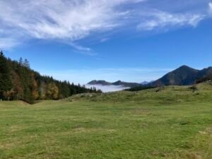 Judith Rakers machte mich auf die Rachlalm aufmerksam … Die ehemalige Tagesschausprecherin hatte nämlich in einem „Wunderschön“-Special den Chiemgau besucht – und dabei auch die Rachlalm erwähnt. „Kannte ich noch nicht“, dachte ich mir. Und das kann man ja ändern. Heute schien der perfekte Tag dafür zu sein, denn entgegen der prognostizierten 20 Grad in Aschau waren es vielleicht 12-15. Zudem keine Sonne, sondern ein intensives grau. Derartige Wetterverhältnisse gibts hier (leider) oft, aber wer Inversionswetterlagen kennt, der weiß: Oben scheint die Sonne!