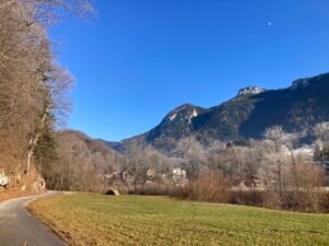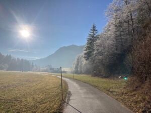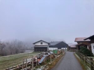 Hm. Es sollte nur eine Mini-Tour nach Bach werden. Dort war es nämlich erkennbar sonnig, während im nur wenige Kilometer entfernten Aschau Nebel sein Unwesen trieb. Auf der Rückfahrt kam dann das, womit ich nicht gerechnet habe … wieder mal ein Sturz auf Eis.