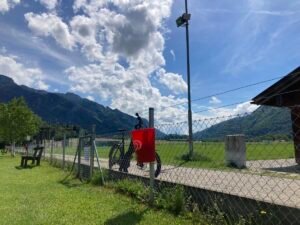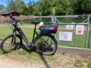 Es sind milde Temperaturen Mitte/Ende Mai in Aschau. Keine allzu große Hitze. Keine 30 Grad. Aber: Warm genug, um schon die ersten mittäglichen Ausflüge zum Badeplatz Aschau zu unternehmen. Dort ein paar Runden schwimmen. Danach in der Somme trocknen und wieder etwas aufwärmen – richtig warm ist das Wasser nämlich noch nicht. Aber auch nicht richtig kalt. Gleichwohl tut ein wärmenden Käffchen nach dem Schwimmen und einer vergleichsweise kurzen E-Bike-Tour durchaus gut. Das gibt’s auch heute – wie so oft – im Cafe Rosa.