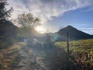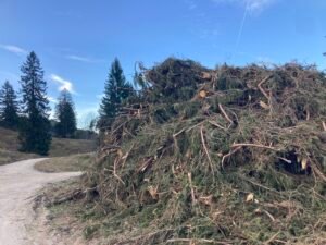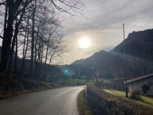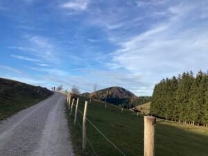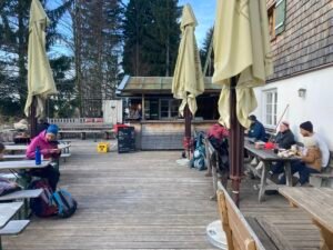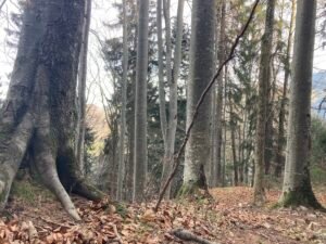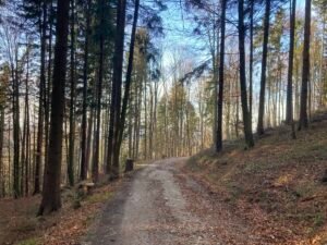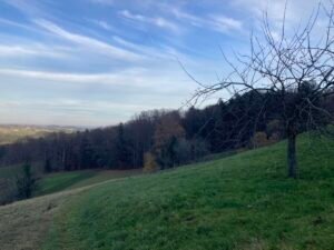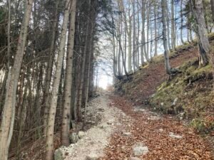 Irgendwann war es dann aber doch geschafft. Ich kam oben bei herrlichem Herbstwetter an, fuhr an der Hofalm vorbei bis zur Stubn. Trank dort ein Haferl Kaffee, um anschließend etwas klüger wieder über Frasdorf zurück zu radeln. Das Ganze war – so könnte man sagen – eine Art empirische Wissenschaft. Durch Nachdenken wäre ich jedenfalls nicht auf die Idee gekommen, dass trockenes Laub so anspruchsvolle Auswirkungen haben könnte.