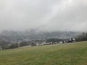 Es ist Heiligabend. Eigentlich sollte Schnee kommen. Bislang ist es aber eher grau. Das macht aber nichts, denn ein Besuch im Berggut hat viel Farbe in den Vormittag gebracht.