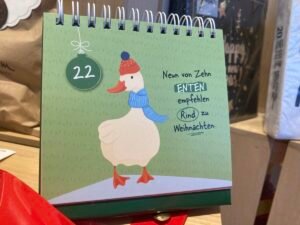 Die grüne Karte im Berggut brachte mich zum Lachen: „99 von 100 Enten empfehlen zu Weihnachten Rindfleisch!“ Klingt irgendwie ziemlich eingänglich. Naja, bei uns gibts heute wieder mal Kartoffelsalat mit Wienern. Seit Jahrzehnten ein Klassiker. Angeblich essen das 36% der Deutschen am Heiligabend. Dicht gefolgt von Raclette mit 33%.
