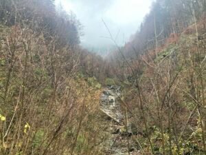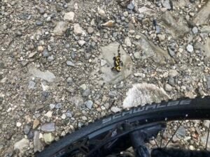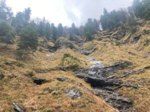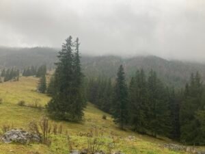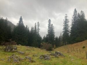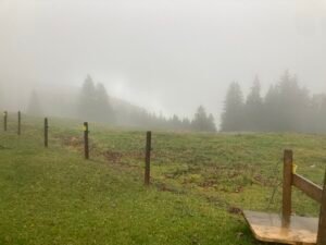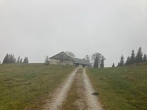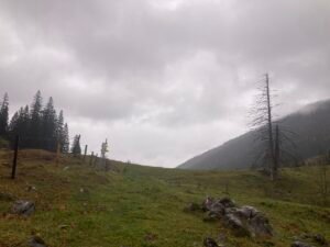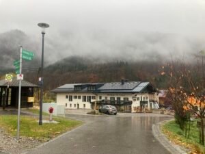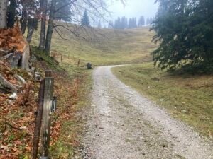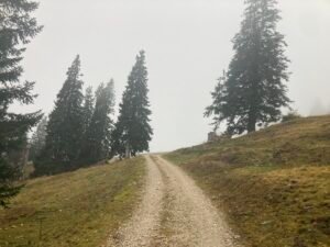 Dafür gab es auf dem Hinweg ein Lowlight: Meine Gangschaltung auf der rechten Seite des Lenkers verlor offenbar eine Schraube. Die Schaltung baumelte fortan herunter. Schalten war nur noch im Standbetrieb und beiden Händen möglich. Aber egal! Ich kam trotzdem bis hinauf zur Hofbauernalm. Dort freute ich mich über ein kleines Kerzenlicht an einer kleinen Kapelle, das ich von weitem sehen konnte. Ich wunderte mich allerdings, wie es die Kerze schaffte, trotz des stürmisch-nassen Winds über Stunden nicht auszugehen. Mir kam ja niemand entgegen, der sie hätte anzünden können.