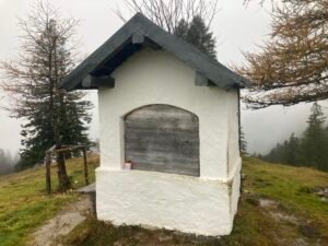 Bei regelrechtem „Sauwetter“ fuhr ich heute hinauf zur Hofbauernalm. Das erste Mal dieses Jahr. Graue Herbstromantik pur. Und oben dann: Ein kleines Licht an der Kapelle.