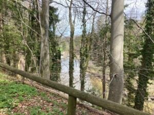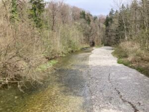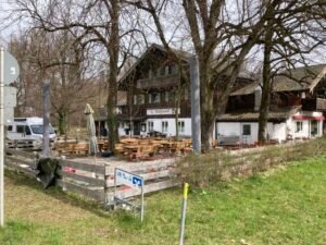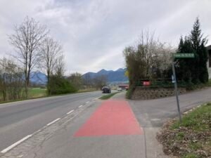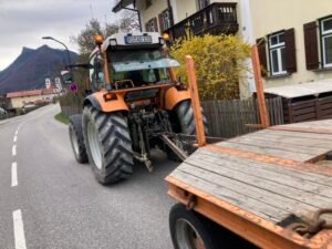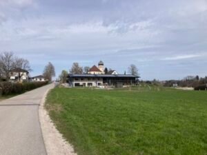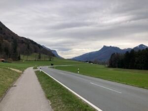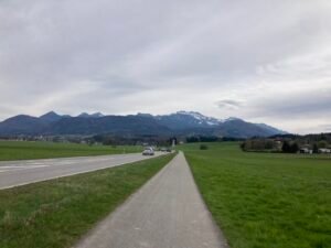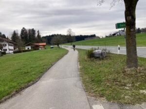 Hm. Damit zum Ende des kleinen Exkurses … zurück zur Rückfahrt, die tatsächlich richtig anstrengend wurde. Um halbwegs gut vorwärts zu kommen, muss man nämlich im größten Gang richtig Gas geben, nicht nur bergauf, auch in der Ebene. Und so kam es eher zufällig auch noch zu einer Art Wettfahrt mit einer E-Bikerin, den ich dann aber am Berg Richtung Aschau endgültig für mich entscheiden konnte bzw. mußte: Es ging nämlich gar nicht anders als unentwegt mit Vollgas im größten Gang zu fahren. Weniger Power hätte sofort dazu geführt, dass die Umdrehungen gegen Null tendiert hätten. Und Anfahren am Berg? In der Kombi selbst mit Turbo-Modus richtig schwer.