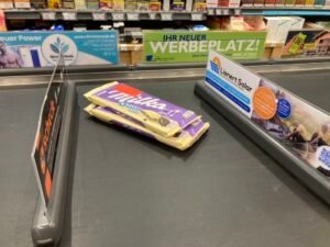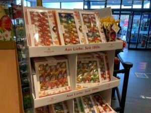 Egal. Ich kaufte mir also die Schnürsenkel, aß im Ort noch ein Eis und im Edeka holte ich mir zur Stärkung auch noch Schokolade: War ja absehbar, dass ich auf der Heimfahrt zusätzliche Energie benötigen würde. Ganz nebenbei fiel mein Blick auf all die nicht gekauften Oster-Süßigkeiten – kein Wunder bei den immer krasseren Preisen für Goldhasen und (Marzipan-)Ostereier. Letztere blieben offensichtlich wie Blei in den Regalen liegen. Auch die von Niedegger, die ich als langjährig geprüfter Marzipanexperte durchaus zu schätzen wüßte. Allerdings stimmt hier das Preis-/Leistungsverhältnis schon länger nicht mehr, weshalb ich für „Marzipan-Gourmets“ aller Art die zwar nicht günstigen, aber fantastischen Marzipanprodukt von Mest empfehle. Ist auch aus Lübeck, aber Klassen besser!