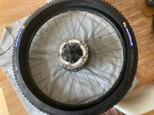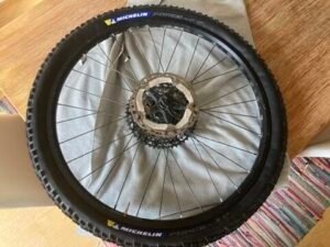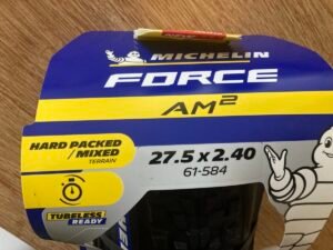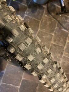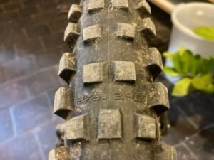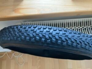 Ein Blick auf das Profil sagte mir dann: „Du solltest eh einen neuen Reifen für die Hinterachse verwenden“. Daher ging ich rüber zu Luis von XC-Bikes, um zu fragen, was er in der Größe 27,5 vorrätig hat. Offenbar nicht allzu viel, denn es war eigentlich nur ein nicht wirklich günstiger Michelin Force AM2. Und für den Preis hätte ich im Internet fast zwei Reifen des Modells erwerben können. Allerdings sind auch dort die Preisspannen sehr groß: Im Angebot reichen sie von unter 40 bis über 70 Euro. Hier lag der Preis am oberen Rand. Aber: Dafür war er vorrätig. Ich konnte ihn asap montieren und da E-Bike wieder nutzen. Das war die Hauptsache.
