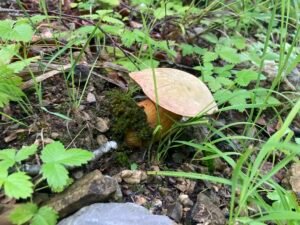 Hier und jetzt erst einmal ein kurzer Einblick in die heutige E-Bike-Tour: Es ging einfach den Berg hinauf und wieder runter. Wow … Ein Satz für die Ewigkeit … Es gab allerdings ein Ziel: Ich wollte nach Pilzen Ausschau halten. Nach „Reherl“ und Steinpilzen. Und siehe da: An exakt der gleichen Stelle, an der ich letztes Jahr den ersten Pfifferling fand, wurde ich auch heute fündig. Ich ließ ihn erst einmal stehen – er soll ja noch wachsen und viele Begleiter bekommen, bevor er in den nächsten Tagen in meinem Bauch landet. Das Wetter dürfte dem entgegenkommen: Bei derart schwül-warmen Regen sprießen auch Pfifferlinge recht schnell!