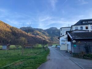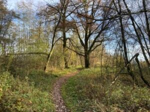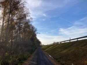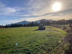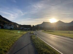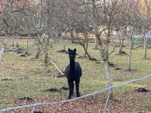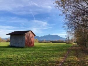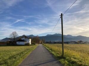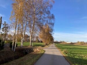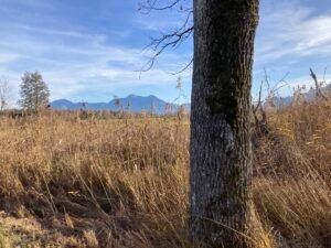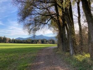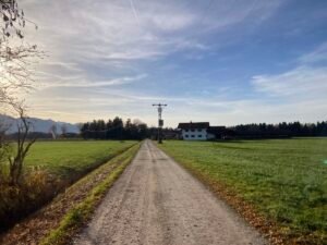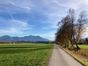 Zurück fuhr ich dann doch nicht weiter nach Übersee, sondern zuerst Richtung Berge und dann wieder zurück entlang der Autobahn. Da gabs lustige Lamas zu sehen und alte Bagger. Interessante Kombi! Schließlich war ich dann nach längerer Zeit irgendwann wieder – fast ein wenig beseelt – zurück in Aschau. Ich würde sagen: Schöner kann eine (spontane) November-E-Bike-Tour kaum ausfallen.