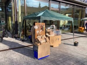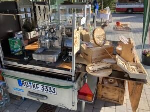 Dass ich heute gleich zwei Dinge entdecken würde, die ich bislang nicht kannte, wußte ich beim Start natürlich noch nicht. Die erste Neuigkeit sollte sich zuerst in Bernau entdecken: Den dortigen Wochenmarkt am Donnerstag Vormittag. Es spricht viel dafür, dass ich kaum einmal an einem Donnerstag Vormittag nach Bernau gefahren bin. Auf dem Markt entdeckte ich dann wiederum Susi Kaffeewagerl: Eine Art rollendes italienisches Café inklusive italienischer Siebträgermaschine. Man könnte aber auch meinen, es wäre ein „mobiler Mini-Multikonzern“ mit vielen verschiedenen Angeboten: Angefangen bei Kaffee und Kuchen bis hin zu selbstgefertigtem Kinderschmuck und ansprechend gefertigten Motivholzbrettchen (die man sich sogar individuell erstellen lassen kann). Schließlich könnte man sogar mit PayPal bezahlen – also irgendwie eine Art Mutter Fourage. Kaffee und Kuchen waren übrigens sehr lecker. Ein Ausflug zu Susi’s Kaffeewagerl ist also zu empfehlen.