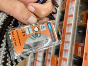 Beim Hornbach in Prien angekommen, kaufte ich (ohne Gewissheit) die nach meiner Meinung am besten passenden Schrauben 5×10 für Inbus. Und siehe da: Die Wahl war gut! Die ganze Sache war in wenigen Minuten mobil behoben. Es konnte wieder Heim gehen – allerdings mußte ich bei der Rückfahrt auf Höhe des Bahnhof Vachendorfs nochmal korrigieren. Ich hatte den Hebel etwas zu weit innen angebracht … Siehe Bilder