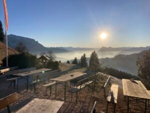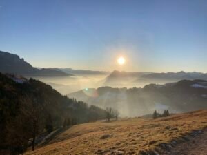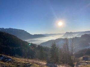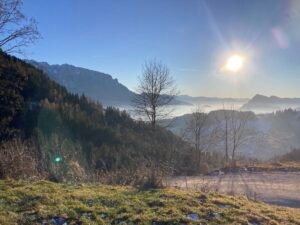 Mit Toni fuhr ich heute hinauf zur Wildbichlalm. Die Bilder lassen ahnen, wie schön die Tour gewesen ist. Sie begann in Hohenaschau im Nebel. Nach Bach kam die Sonne – und die blieb bis zur Wildbichlalm. Auf dem Rückweg wurde es dann wieder ziemlich „zapfig“ und neblig.