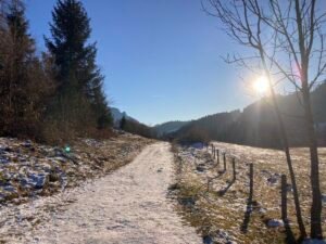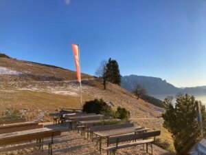 E-Bike-Touren auf einen höheren Berg sind für passionierte Skifahrer wie Toni zumindest ein kleiner Ersatz, wenn der Schnee ausbleibt. Das sagte er mir nach der Tour, die wir heute gemeinsam auf die Wildbichlalm gemacht haben. Es war (zumindest nach Bach) Hammer-Wetter. Und hinauf auf den Berg war es sogar richtig warm. Die Wärme war allerdings vorbei, als wir wieder gemeinsam zurück nach Hohenaschau fuhren. Ohne Übertreibung: Es war eisig. Die Hände waren derart „eingefroren“, dass sich Tony ein zweites Paar Handschuhe anzog. Zwar hatte ich auch meine neueren Roeckl-Handschuhe dabei, muss aber zugeben: Ein zweites Paar Handschuhe darüber hätte ich auch gebrauchen können. Vermutlich war es die Feuchtigkeit des Nebels, der die Hände derart kalt werden lies. Egal! Die Tour war der Hammer. Und das ist das wichtigste.