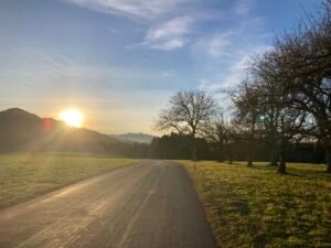 Merkwürdiges Wetter diesen Dezember: Entweder ätzendes grau oder strahlendes blau. Heute war es mal wieder letzteres. Bei der E-Bike-Tour Richtung Prient entstanden tolle Bilder. Darunter eines mit einem wunderschönen Abendrot.