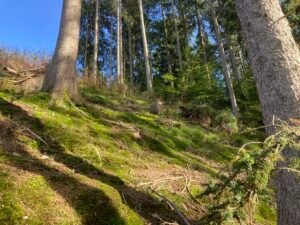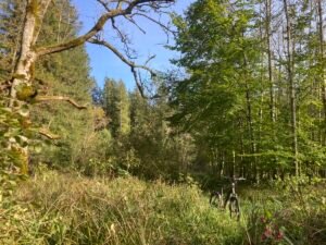 Natürlich kann man diesen wunderschönen Weg auf den offiziellen Pfaden entlangfahren, aber ich entschloss mit zur Querfeldein-Variante. Und dabei kommt man dann tatsächlich zur „wilden Prien“, die so verschlugen ist, dass weder rechts noch links irgendwelche Pfade entlanggehen. Insofern ist dann tatsächlich irgendwann eine natürliche „Sackgasse“ erreicht, an der man nur noch umdrehen kann.