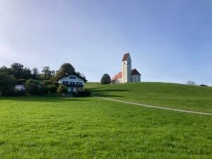 Der September 2024 war einer der regenreichsten überhaupt … Umso schöner, dass gegen Ende doch noch einmal etwas Spätsommerfeeling aufgekommen ist. Das heutige Wetter war jedenfalls vom feinsten, und ich beschloss, Richtung Norden zu radeln. Das Ziel war zunächst noch unklar. Zuerst fuhr ich Richtung Frasdorf, von dort Richtung Umrathshausen. Dann bog ich bei der Unterprienmühle links Richtung Prien ab – das ist doppeldeutig, weil des da sowohl in Richtung des Orts als auch des Gewässers mit gleichem Namen geht.