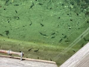 Milde Temperaturen und kristallklares Wasser machen es möglich: Am Badeplatz Aschau kann man aktuell unzählige Bergmolche sehen. Darunter relativ junge, aber auch ältere Tiere, die sich offensichtlich freudig vermehren.