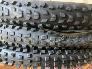 Es war keine Frage, ob ich neue Hinterreifen brauche, sondern welche ich kaufen sollte. Offensichtlich wurde diese Notwendigkeit, nachdem ich vor wenigen Tagen eine kurze Wintertour gemacht hatte. Dabei mußte ich feststellen, dass die Assegai-Hinterreifen definitiv nicht mehr genug Grip hatten, um selbst kleine Steigungen mit Schnee zu bewältigen.