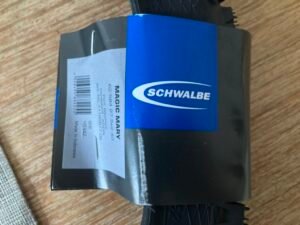 Den Namen fand ich ausgesprochen nett. Außerdem war er gerade aufgrund Black Friday im Angebot. Als dann allerdings heute das „Paket“ kam, war ich völlig baff: Ich erwartete ähnlich wie bei Maxxis oder Pirelli ein kleines Päckchen. Es kam aber ein echter „Paket-Brummer“ – ich war irritiert. Nachdem ich den Karton geöffnet und den Reifen erstmals angefaßt hatte, war klar, warum es kein kleines Päckchen sein konnte: Weil Magic Mary so formstabil ist, dass man den Reifen gar nicht so klein zusammenfalten kann wie die anderen.
