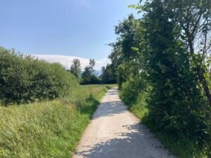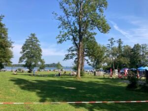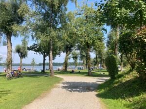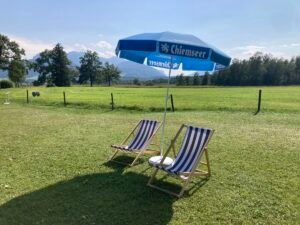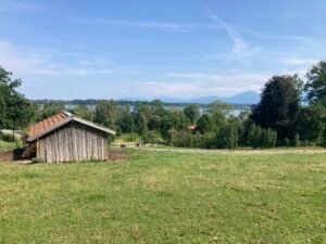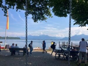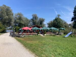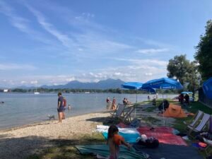 Nächster Halt war das vielleicht noch schönere Strandbad Schöllkopf. Im Vergleich zu gestern war heute aber kaum was los. Alle (wie ich) rechneten offenbar mit weniger schönem Wetter … Nun ja, dann gings wieder heim nach Aschau. Und schon musste ich mich an die vielen Rentner erinnern, die hier oft bei noch höheren Temperaturen in Vollmontur mit ihren E-Bikes herumradeln. Gruppen mit nicht selten 10-20 Radlern. Alle nacheinander … Wünschen wir ihnen beste Gesundheit!